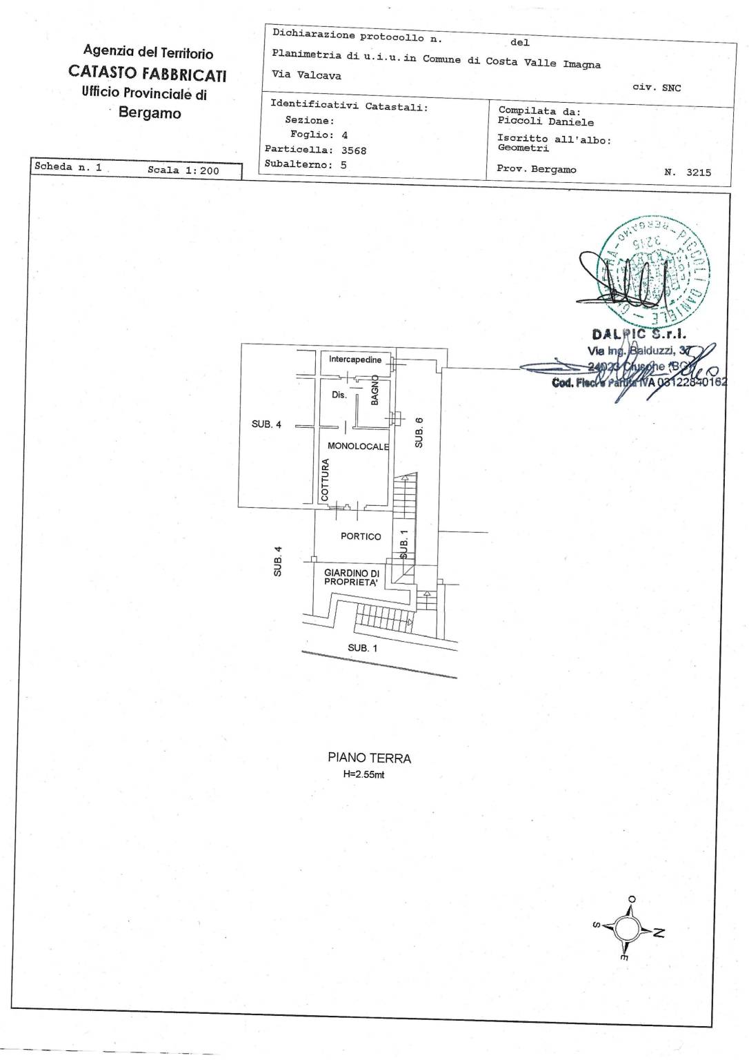 Bellissimo e recente MONOLOCALE costruito nel 2010 in località Costa Valle Imagna , grazioso paese di villeggiatura, soleggiato e servito da ogni confort. L'appartamento è posto al piano terra, composta da ingresso, soggiorno con angolo cottura e bagno. Porticato di 12 mq e abbinato ad un bellissima terrazza panoramica di circa 20 mq. Soluzione 4 posti letto.